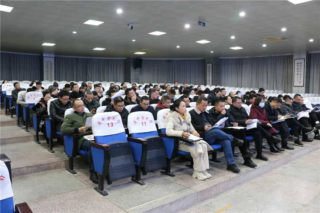 为更扎实有效地推进高三教育教学工作,充分发挥“遂宁一诊”的阶段性检测诊断功能,总结反思阶段性教学成果,同时分享和交流备课组长、班主任和学科教师的经验,2023年1月11日晚,蓬溪中学高三年级在学术报告厅召开了遂宁一诊考试成绩分析会。学校党委书记胥杰、校长杨加林与全体蹲班行政领导、高2021级全体教师齐聚学术报告厅,参加高三遂宁市“一诊”成绩分析总结会。大会由校长杨加林主持。