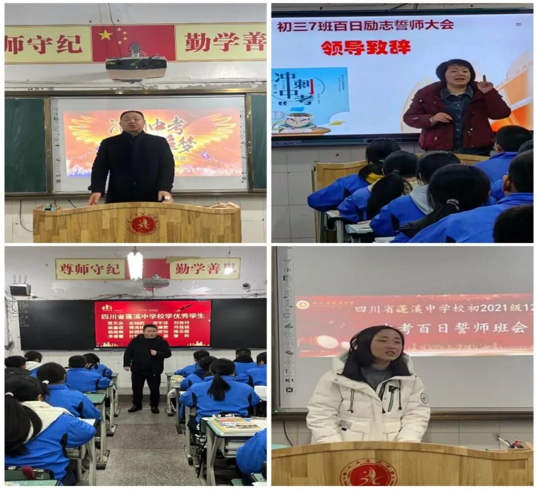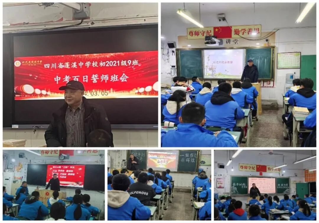 时光荏苒,岁月已三载。怀昔园内,见杨柳吐绿,洋溢蓬勃生机;文昌楼前,闻梅香四溢,拥抱灿烂春天。2024年3月5日晚,蓬溪中学初三年级举行了百日誓师主题班会。初中年级领导深入初三各班,为孩子们加油鼓劲。