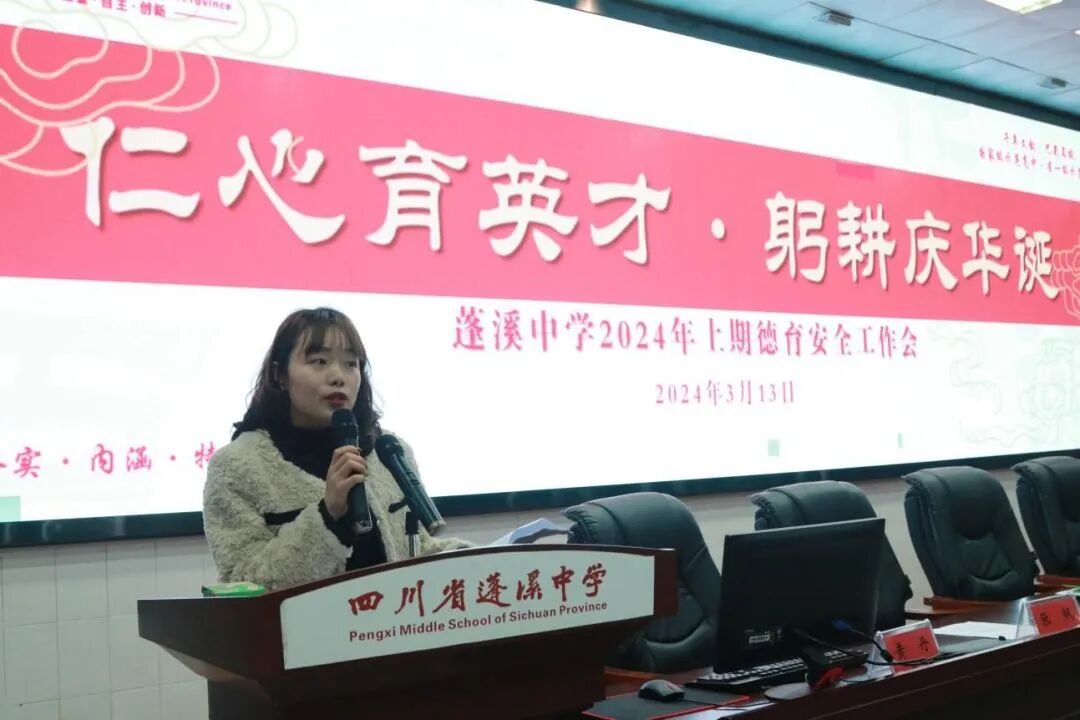 新学年、新学期、新征程、新希望。本次德育安全工作会议的成功召开,既肯定了过去、又规划了未来;既统一了思想、又明确了目标。我们坚信,在蓬溪中学全体德育工作者的精心管理下,蓬溪中学的德育工作一定会继续坚持稳扎稳打,同时不忘开拓创新,将工作做细、做实、做新、做优,也定能为蓬溪中学百年华诞献礼。