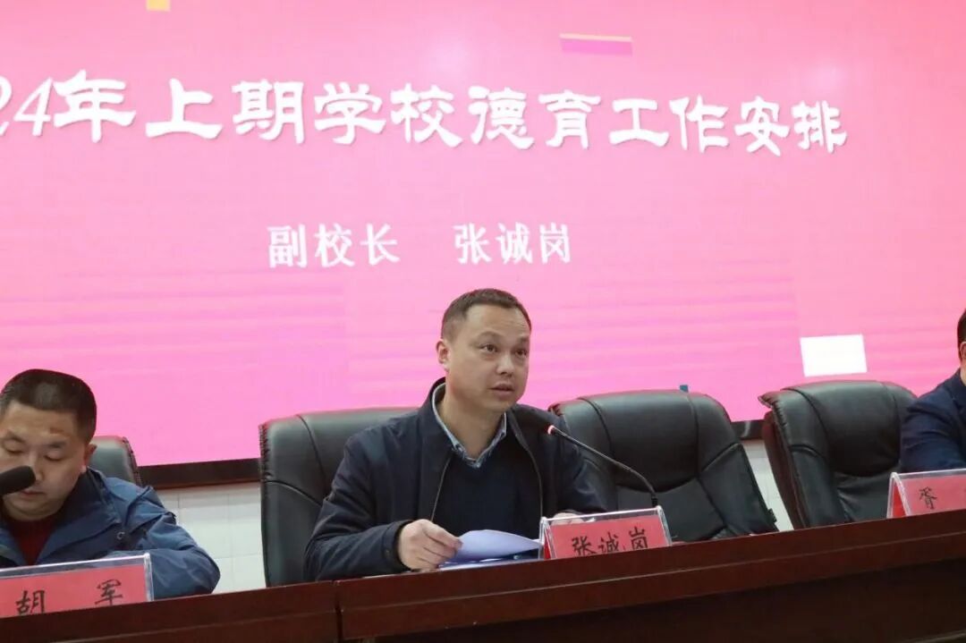 分管德育工作的张诚岗副校长对本期德育工作进行了具体的部署和安排,具体包括:1.号召德育工作者学习德育工作开展的纲领性文件;2.分享了八个德育重点教育的具体内容和措施;3.强调了落实德育重点常规工作具体要求;4.抓好课间操的质量和体育锻炼效果;5.抓好清洁值日班级管理工作;6.开展好各类活动,服务校庆、选拔人才。
