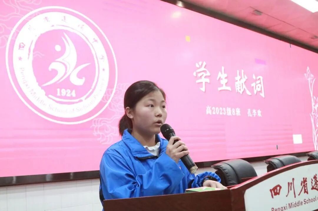 接着,来自高2023级8班的孔李欢同学向全体班主任老师献词,她道出了班主任老师对自己的影响,也表达了对班主任老师们辛勤工作的感激。