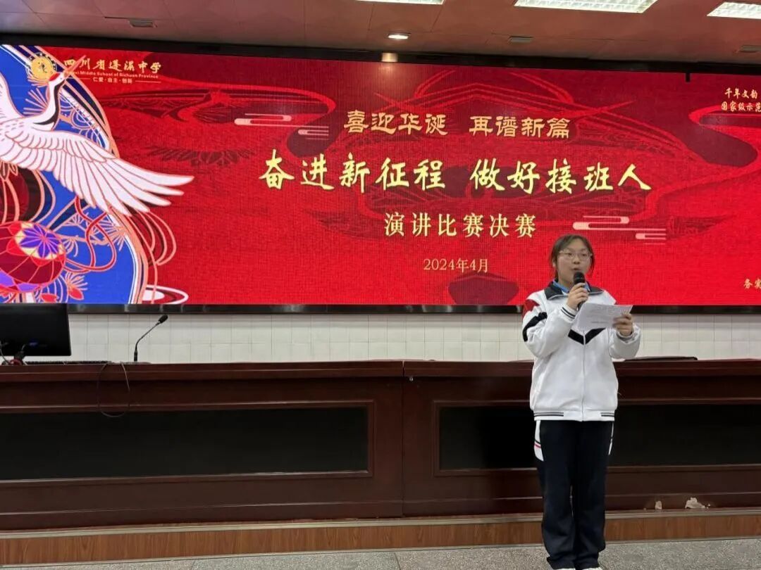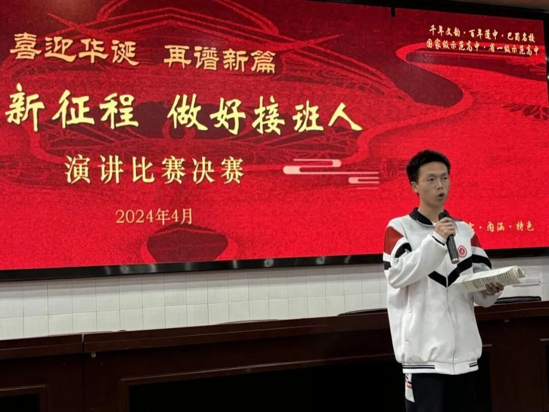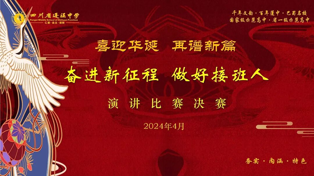 本次演讲比赛以“奋进新征程,做好接班人”为主题,要求参赛选手在充分了解我校百年办学历史的基础上,结合自身的学习生活实际,围绕怎样在新的时代背景下做一个合格的蓬中学子展开。