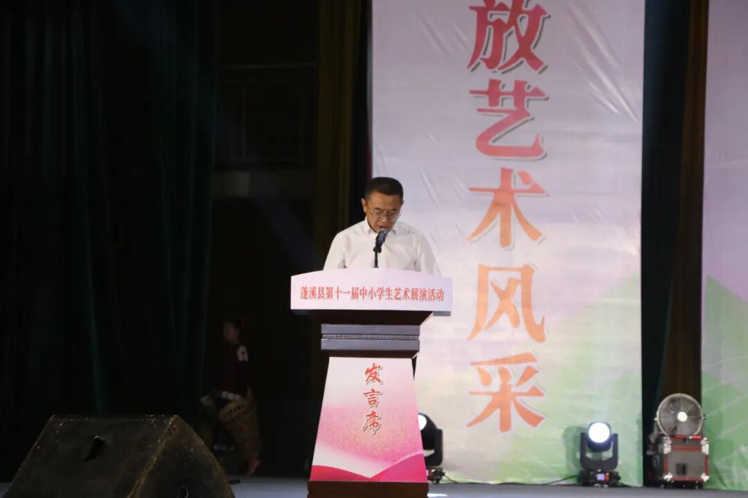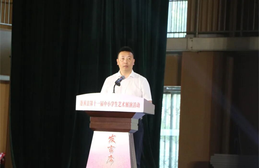 县委常委、县委办主任邓涛宣布蓬溪县第十一届中小学生艺术展演活动正式开始。