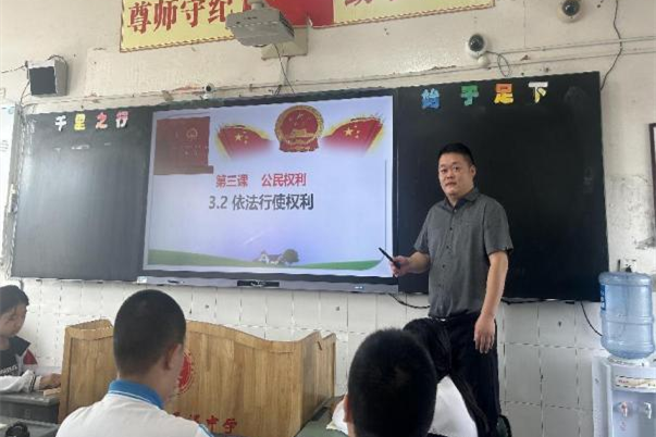 道德与法治备课组何礼和王小山老师同上《依法行使权利》一课,何礼老师通过典型案例(网络谣言)一案到底,通过合作探究让学生知道行使权利有界限,维护权利守程序;通过小组学习,充分发挥学生主动学习的积极性,小组总结分享维权方式,让学生上台展示,学生自己讲,学生自己画,生动形象的为同学们展示维权方式。学生参与度高,课堂教学达成度高,深受师生好评。王小山老师选取两个典型案例,贯穿整个课堂教学,从问题提出,到探讨问题,再到问题解决,培养了学生分析问题,解决问题的能力。同时王老师通过解决学生生活中遇到的问题引导学生树立维权意识,培养学生的思辨能力。