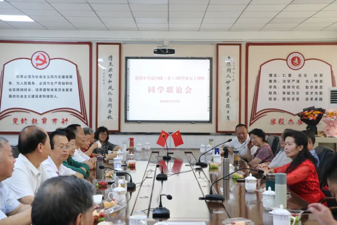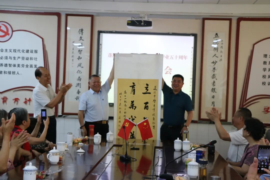 周方清等校友动情地回忆起当年在母校学习和生活的点点滴滴。校友代表向两位老师献上鲜花,表达对老师辛勤付出的感激之情。联谊会气氛热烈而温馨,充满了欢声笑语和浓浓的同学情谊。五十年岁序更替,五十年流光溢彩。此次回访活动不仅加深了校友们对母校的感情,也让他们更加坚定了支持母校发展的决心。2024年正值蓬溪中学建校百年,母校欢迎广大校友常回家看看,共同追忆青春华年,共同见证母校变迁。![]()
