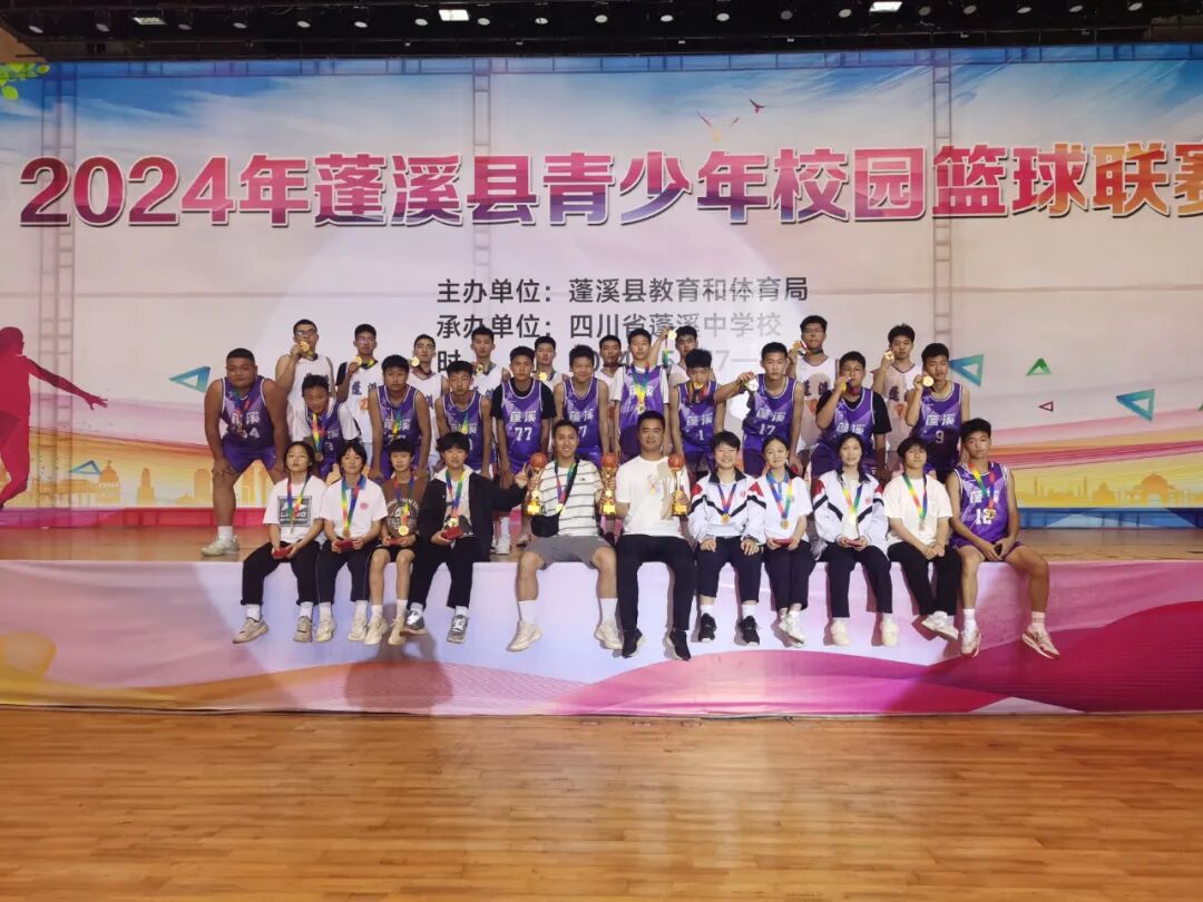 5月19日下午,蓬溪县2024年青少年校园篮球比赛落下帷幕。本次比赛由蓬溪县教育和体育局主办,蓬溪中学承办。经过三天的激烈角逐,蓬溪中学代表队斩获初中男子组冠军、初中女子组冠军、高中男子组冠军,包揽了中学组所有组别的第一名。