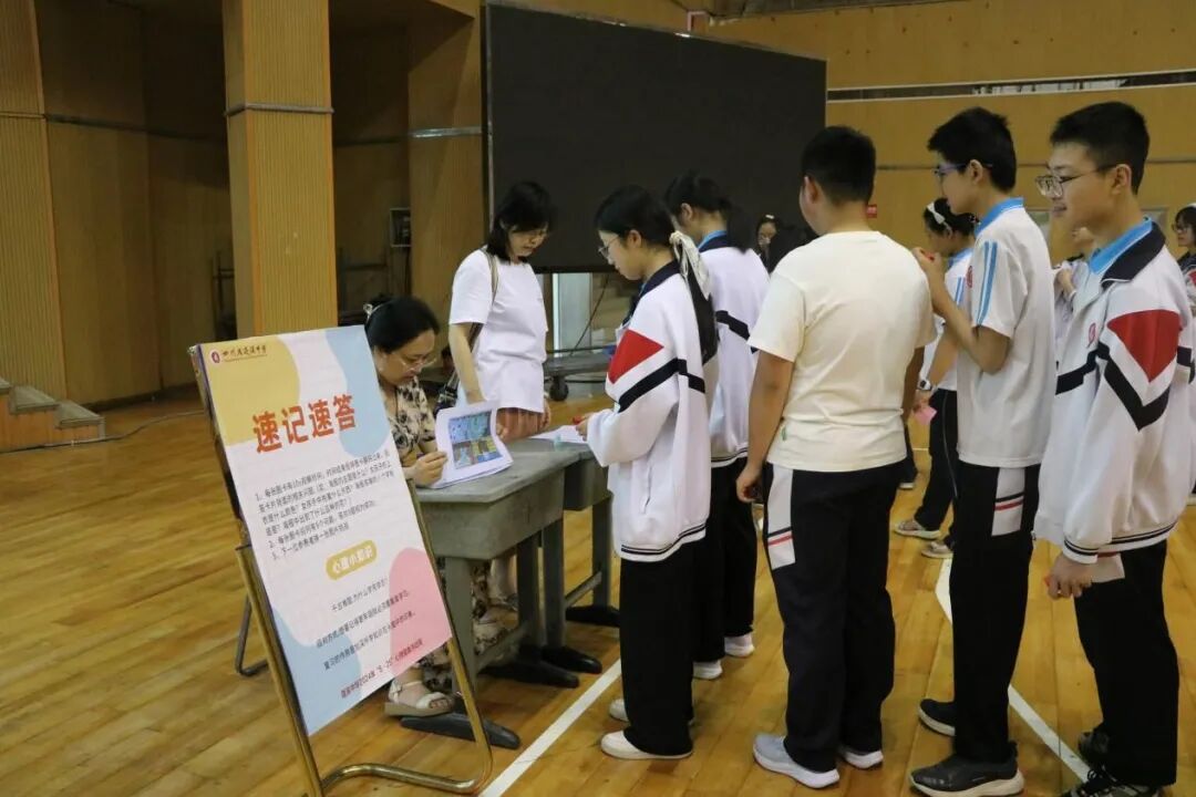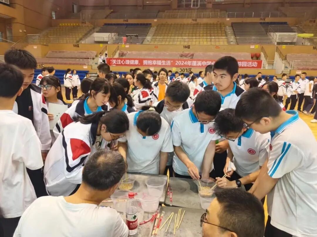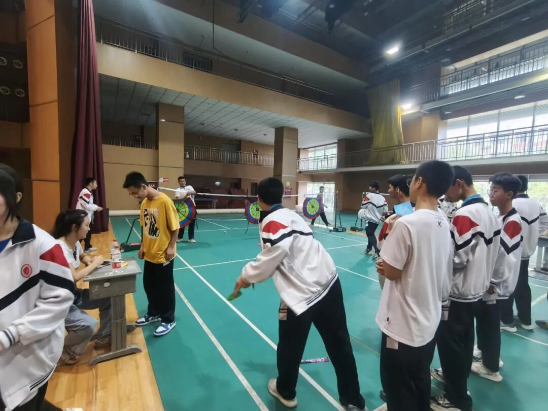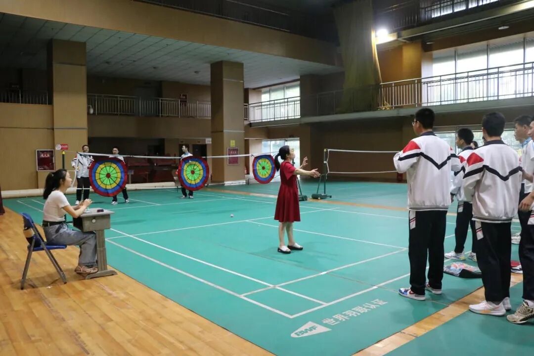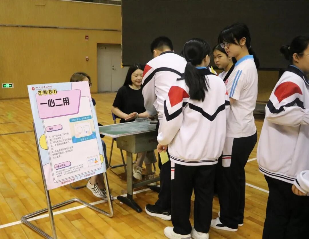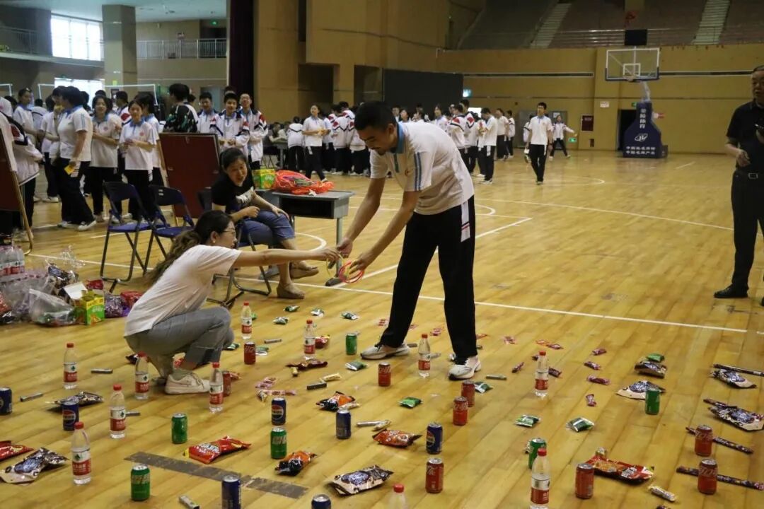 随着中考的脚步日益临近,初三的学子们正经历着紧张的复习阶段。为了帮助他们减轻压力,提振士气,5月23日上午,我校学生发展中心精心组织了以“关注心理健康,拥抱幸福生活”为主题的游园活动。初三年级800多名学生踊跃参与了活动,大家在多彩的趣味活动中体会到同学之间的团结协作,尽情释放自我,同时增强了自我保健意识。本次活动精心设计了8个项目,每个项目都充满了趣味性和挑战性。同学们手持积分卡片,通过参与不同的项目来收集印章。每当他们成功完成一个项目,便可以在卡片上盖上对应的印章。当卡片上的印章集齐8个,他们就有机会参与套圈比赛,领取套圈奖品。