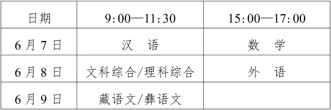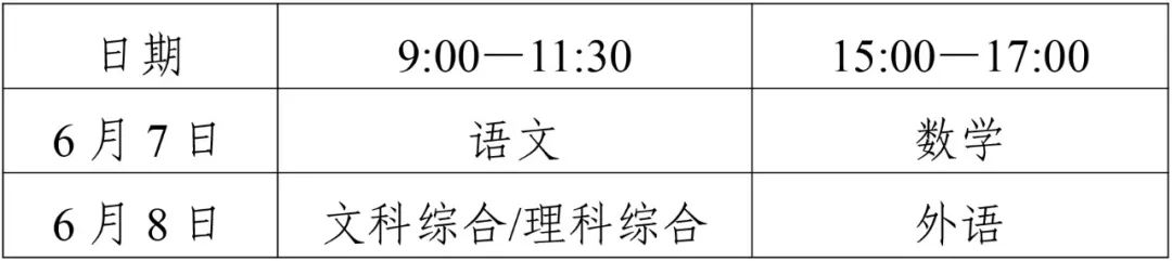 (3)一类模式高考各科考试时间(北京时间)安排: