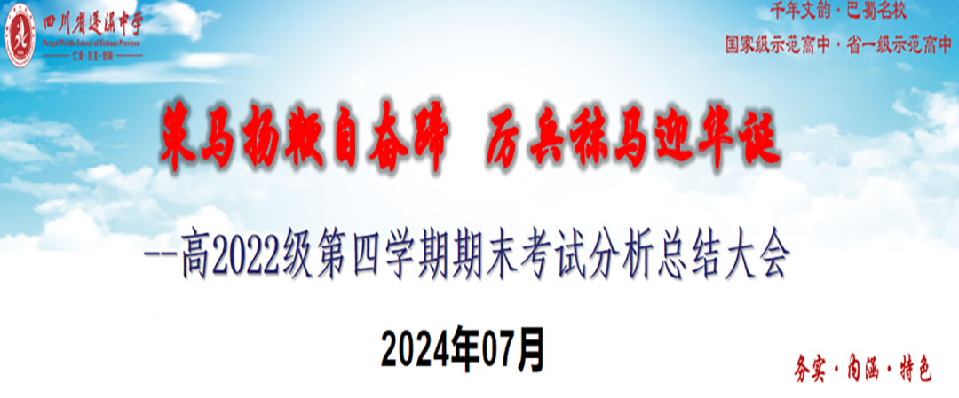 “谋定而后动,知止而有得。”为精准把握工作得失,明确努力方向,提升教学质量。2024年7月22日晚,蓬溪中学高2022级第四学期期末考试分析总结大会在学术报告厅举行。党委书记胥杰、校长杨加林、副校长蒋洪、年级主任张帆及高2022级全体教师参加了会议。本次会议由张帆主持。