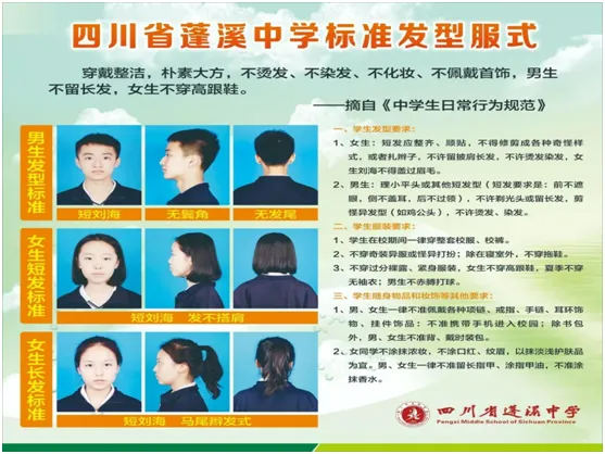 8月30日上午7:00-8:30报到,9:00-12:00参加入学综合素质测评。到校后请在校门外扫码或到校前广场展板处查询测评室信息,不清楚的请咨询现场老师。参加入学综合素质测评的学生需准备黑色字迹签字笔、2B铅笔、直尺等文具,家长统一在学术报告厅等候。9月1日上午8:00—12:00报到,请到校门口扫码或到校前广场展板处查询分班信息,到对应教室班主任处报到,晚上6:00到班学习。 1.住校学生物品较多的,家长可协助到寝室安置,车辆一律从体育馆机动车专用通道进入。2.床上用品学校已经统一采购,包括:床单、被套、枕套,(长2米,宽0.8米,学生自备垫絮及凉席等),入学报到时到班主任处领取凭条,凭该凭条到宿管办领取床上用品。3.学生自备脸盆、脚盆、水桶、牙膏、牙刷、漱口杯、毛巾、梳子、沐浴液、洗发水、肥皂、洗衣液、水杯、铁皮柜小挂锁等生活用品。4.寝室为每位同学提供一个铁皮柜,请实时上锁,确保财产安全。5.寝室均配备独立卫生间、洗漱间、晾衣台、热水供应系统、饮水机等。1.按照要求整理好仪容仪表。学生礼仪常规要求“十不准”:不准化妆;不准带任何化妆品、化妆用具到校;不准染发、烫发;男生不准留长发;不准染指甲;不准留长指甲;不准佩戴任何首饰;不准在教学区域穿拖鞋;不准穿过透、过短、有破洞之类的奇装异服;不准穿高跟鞋等,对不符合要求的学生暂缓报名。![]()