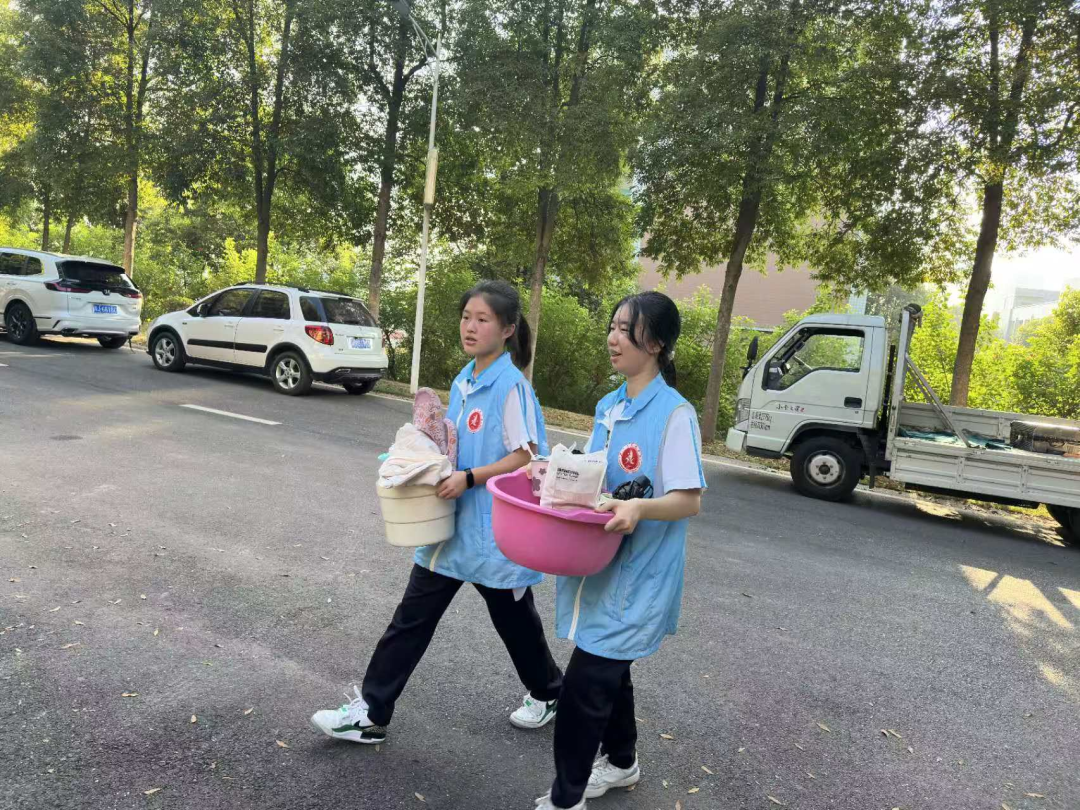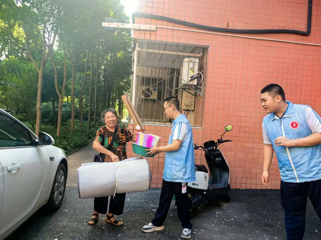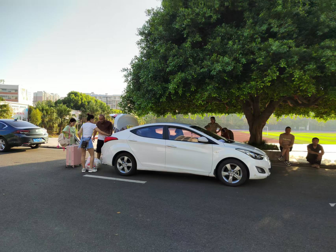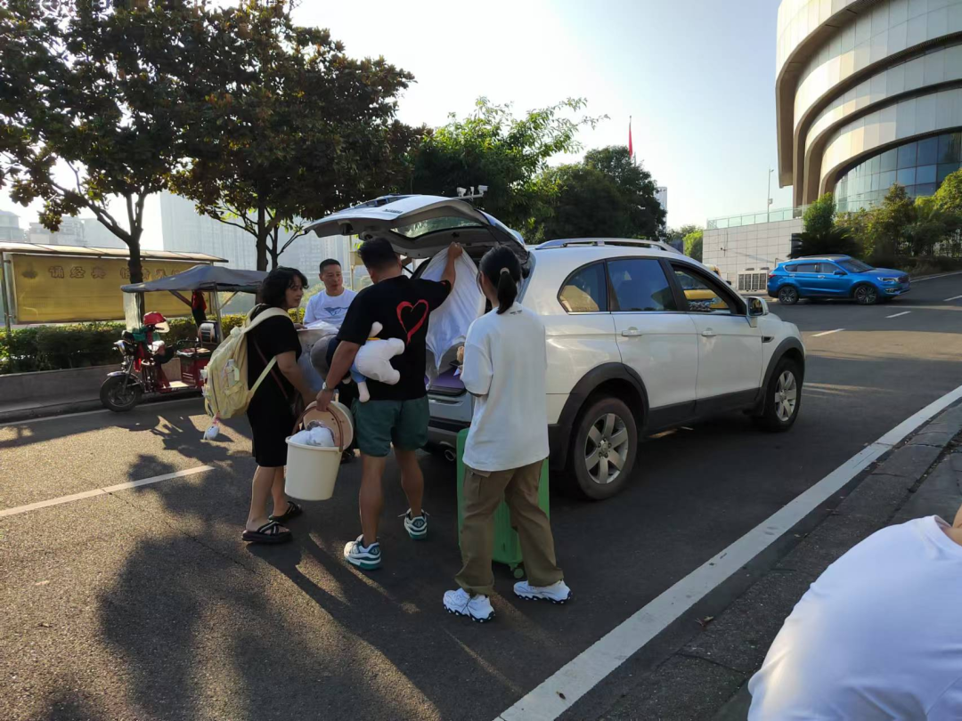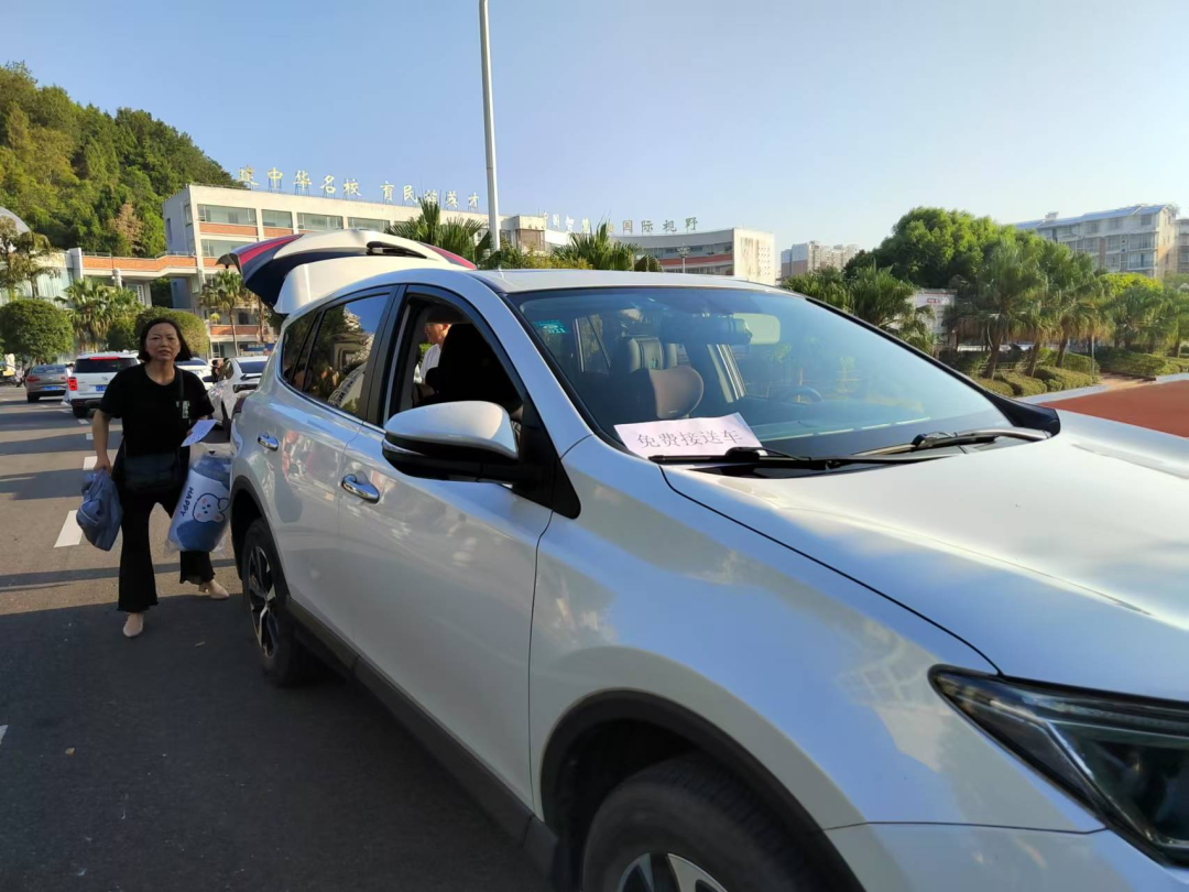 因天气炎热,又考虑到学生行李多且沉重,学校安排了专车,免费为新生运送行李。