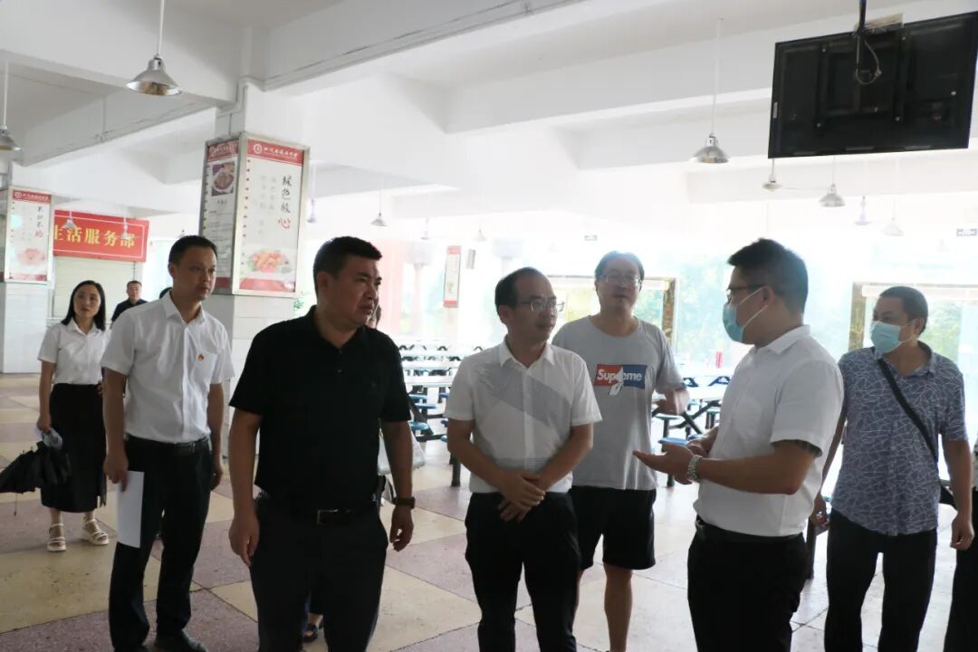 刘六亿一行实地考察了课堂教学秩序、食堂运营情况及校史馆建设进度,详细询问了学校开学各项工作的开展情况。蓬溪中学党委书记胥杰介绍了学校在面对极端高温天气,部分维修项目进度迟缓和大班额化解压力巨大等困难的情况下,攻坚克难、如期开学的情况,以及学校在安全治理、教学教研、课堂监管、德育活动、考试管理和食宿管理等方面的具体做法。胥杰表示,学校领导班子将勇于担大责,助力学生立大志,成大才,力争做到食宿有品质、管理有水平、质量有提升、社会较满意。