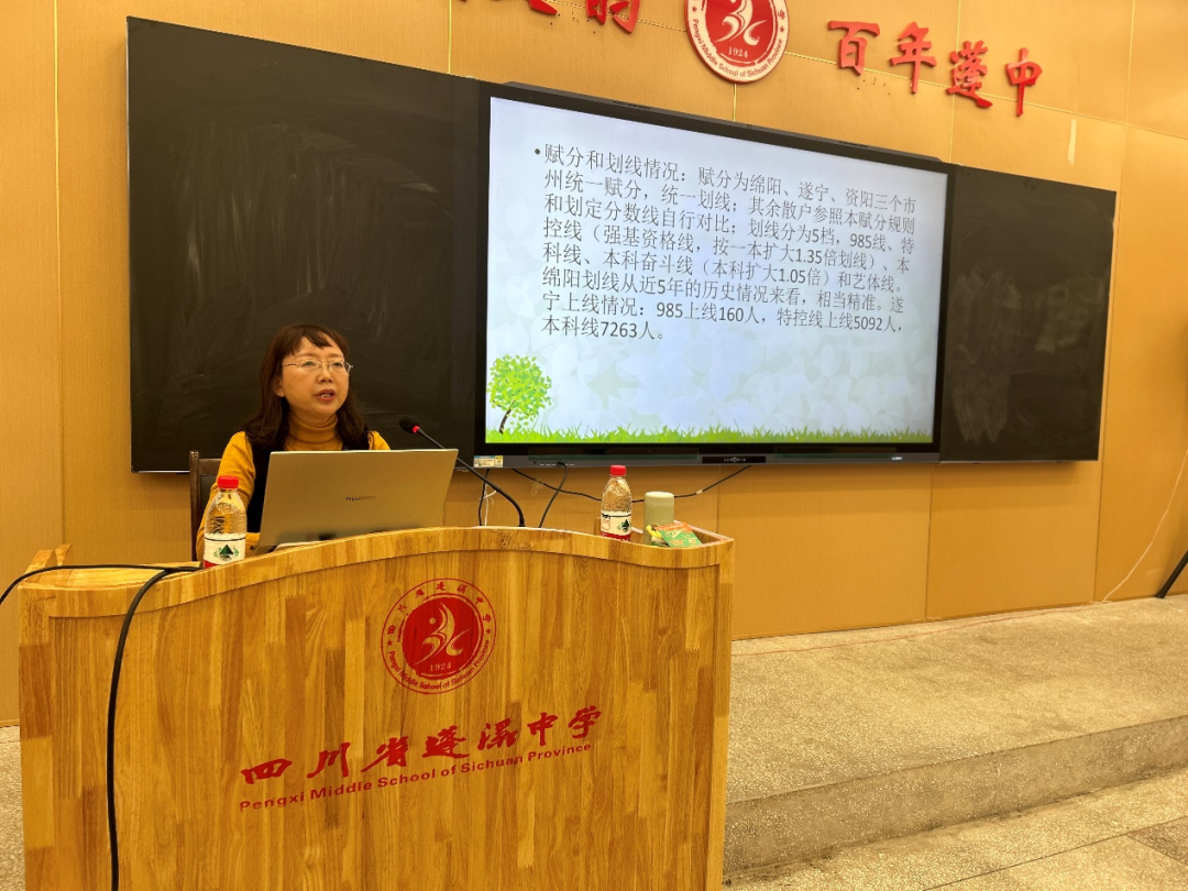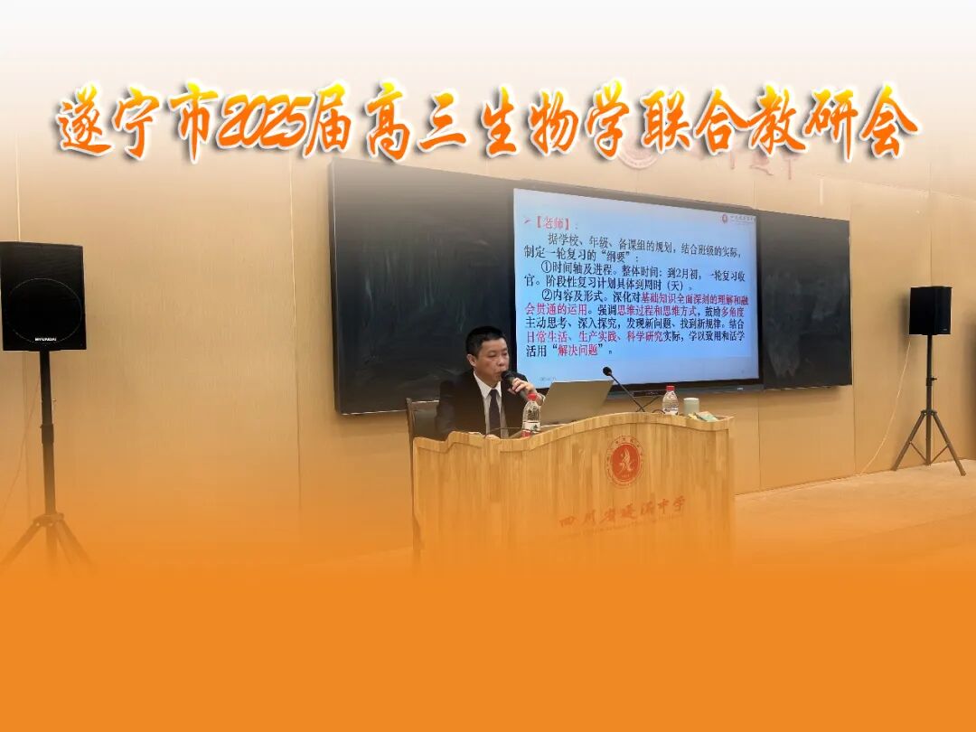 11月15日,遂宁市2025届高三生物学联合教研会在四川省蓬溪中学校举行,全市各高中学校高三备课组长和遂宁市生物学科中心组全体成员参加了会议。会议由遂宁市教育科学研究所生物学教研员曹惠敏主侍,围绕“科学思维”核心素养的培训与提升为主题展开,主要包括专题讲座和一诊数据分析两个环节。![]()