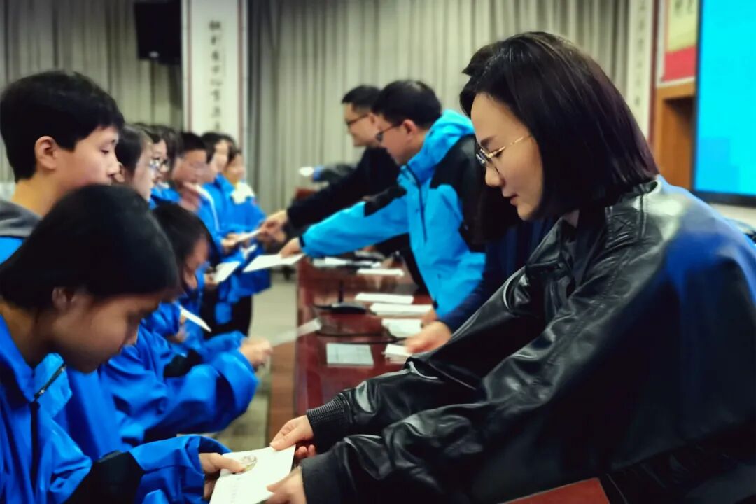 张玉婷副会长代表知联会鼓励受助学生好好学习,珍惜青春岁月,努力拼搏,勇攀高峰。各位领导给受助学生发放助学金后,高三学生王诗琦代表学生发言,感谢社会热心人士的关心和关爱,一定心怀感恩,努力学习,长大后用自己的绵薄之力回报社会。