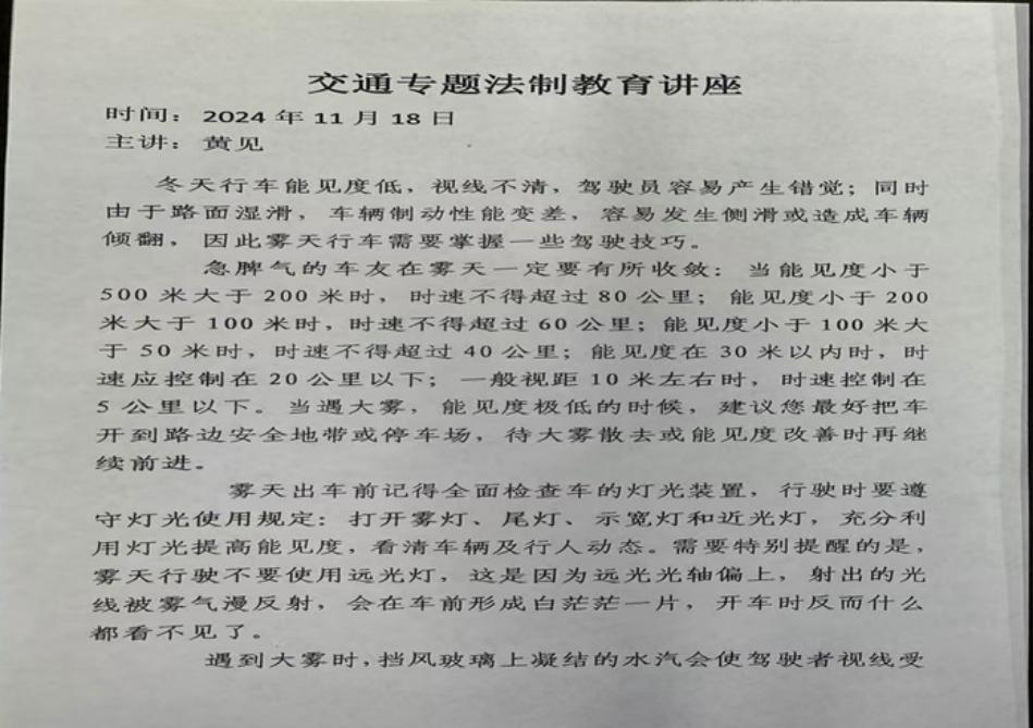 在 2024 年 “12.2 ”交通安全集中宣传月期间,我校大力开展学生交通安全知识宣传教育和交通违规学生集中警示教育整治行动。