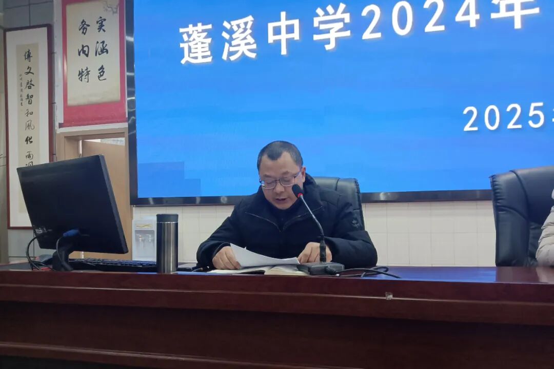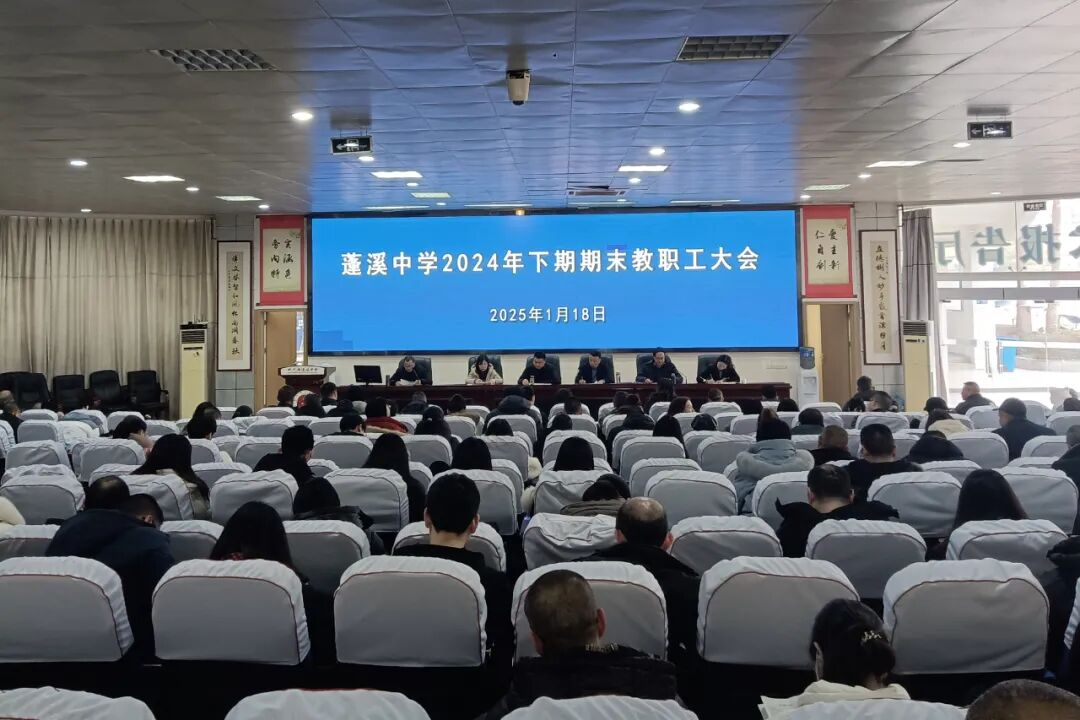 1月18日下午,蓬溪中学在学术报告厅召开2024年下期期末教职工大会,总结学期工作,规划未来工作方向。会议由校长杨加林主持,全体教职员工参会。