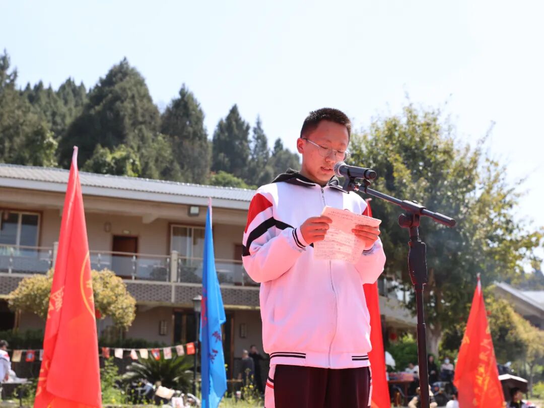 早上七点半,高2023级全体师生齐聚操场,在庄严的升旗仪式结束后,由政教处主任胡军主持出征仪式。年级分管领导文宏宇作动员讲话,年级主任唐鑫从杨加林校长手中接旗,党委书记胥杰郑重宣布此次活动开始。全体同学在老师的带领下,拿着研学工具,有序地踏上了活动征程。