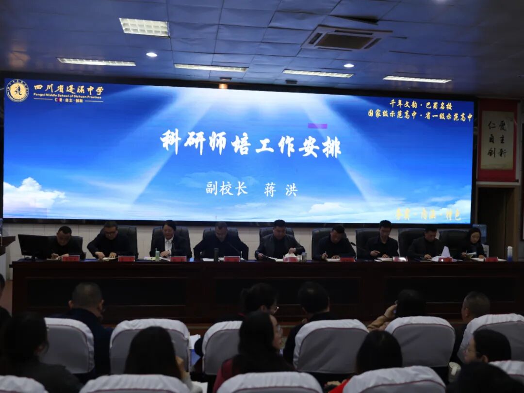 为深入贯彻落实新时代教育改革发展要求,推动学校教科研工作高质量发展,3月25日晚,蓬溪中学隆重召开以“深耕教学促发展,精研教法谋新篇”为主题的教科研、师培工作会议。学校党委书记胥杰、校长杨加林等全体领导班子成员及教研组长、备课组长、教务处、科研室人员参加会议,会议由科研室主任刘艳主持。