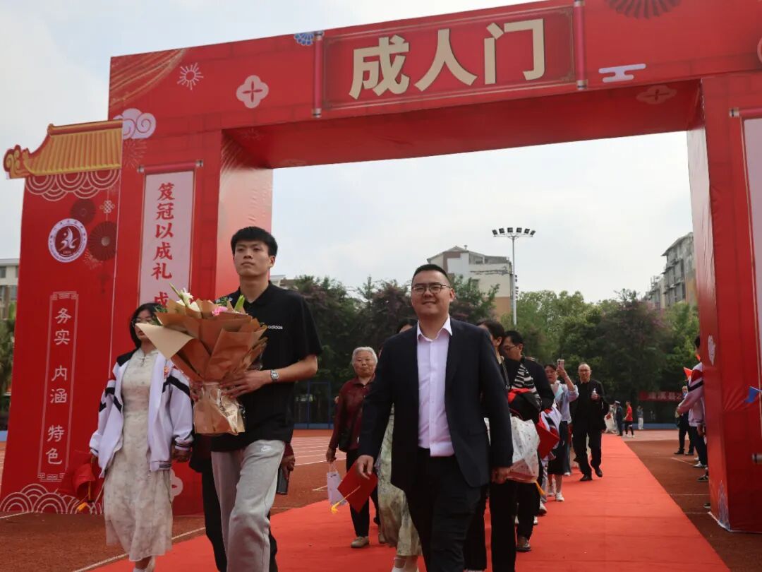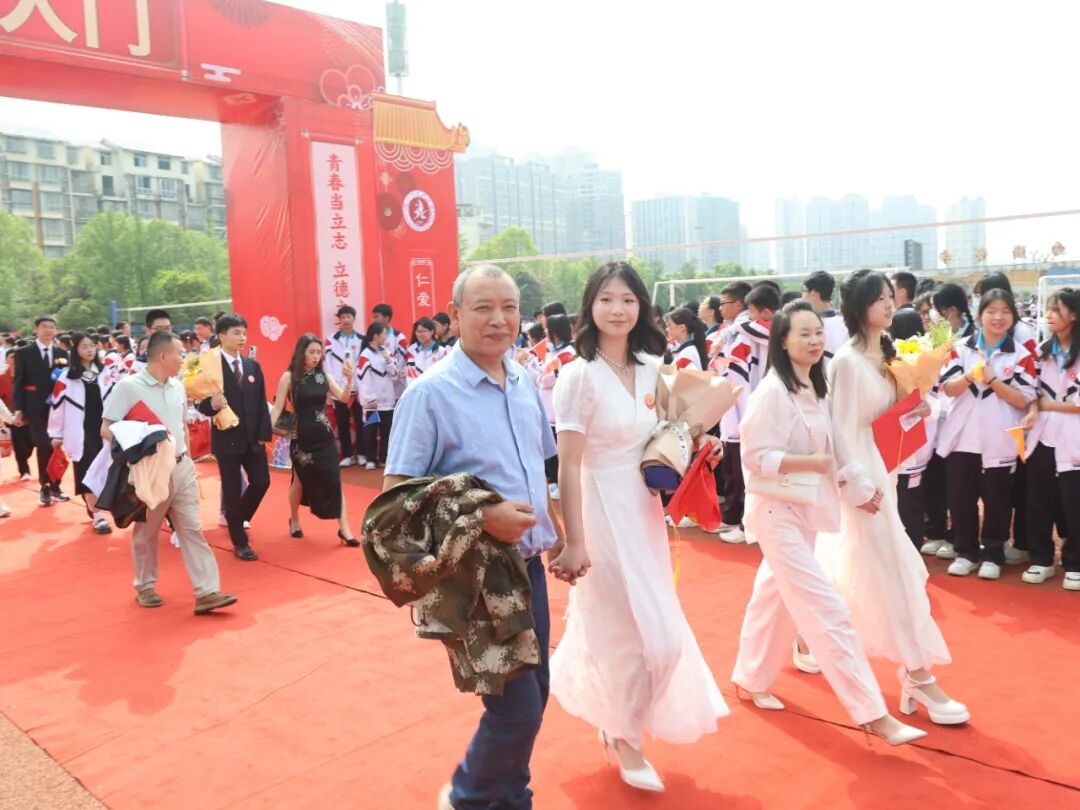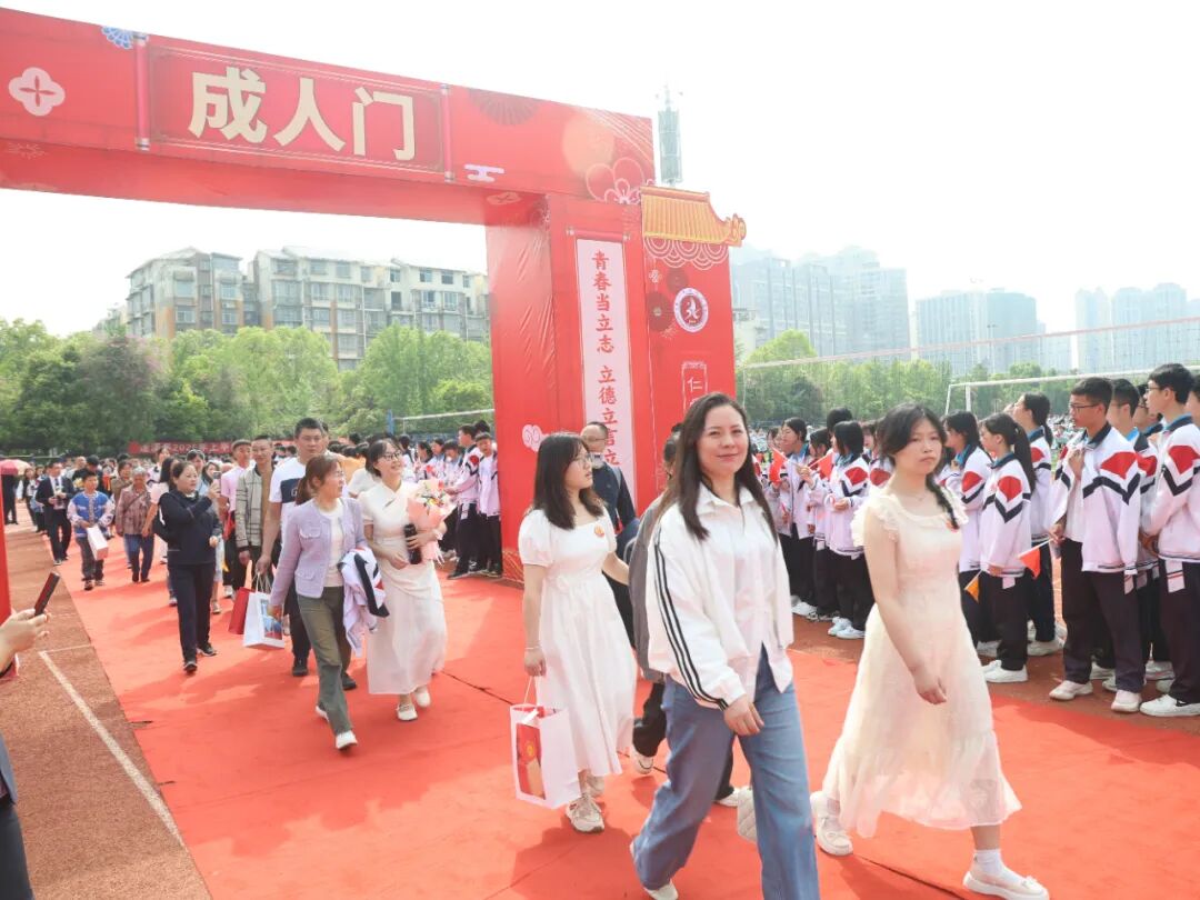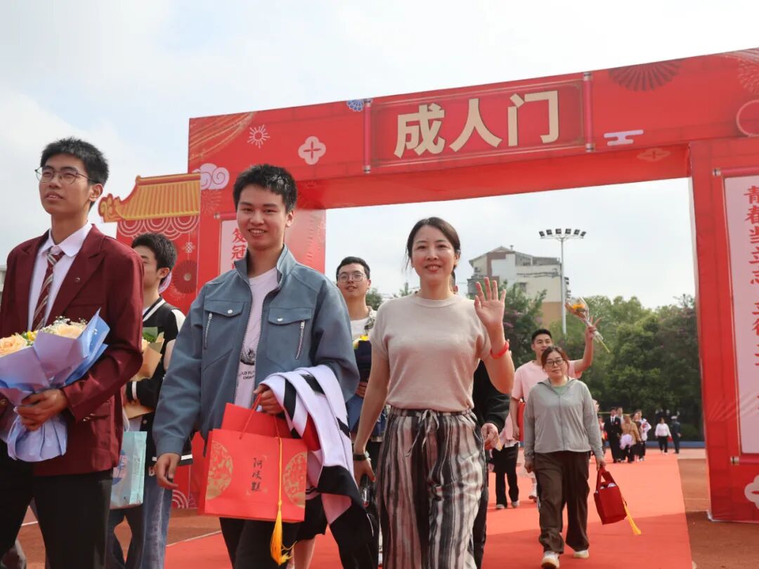 全体高三学子在校领导、教师及家长的陪同下,踏上红毯,依次穿过“成人门”“成才门”“状元门”,寓意告别青涩、肩负使命、奔赴未来。《千山万水》《明天会更好》的大合唱歌声与掌声交织为本次活动画上完美句号。