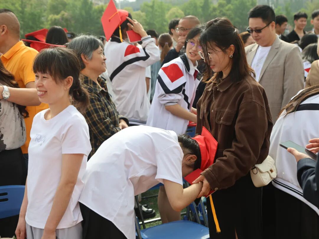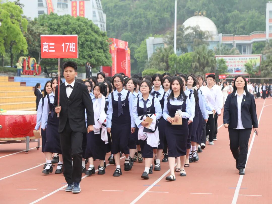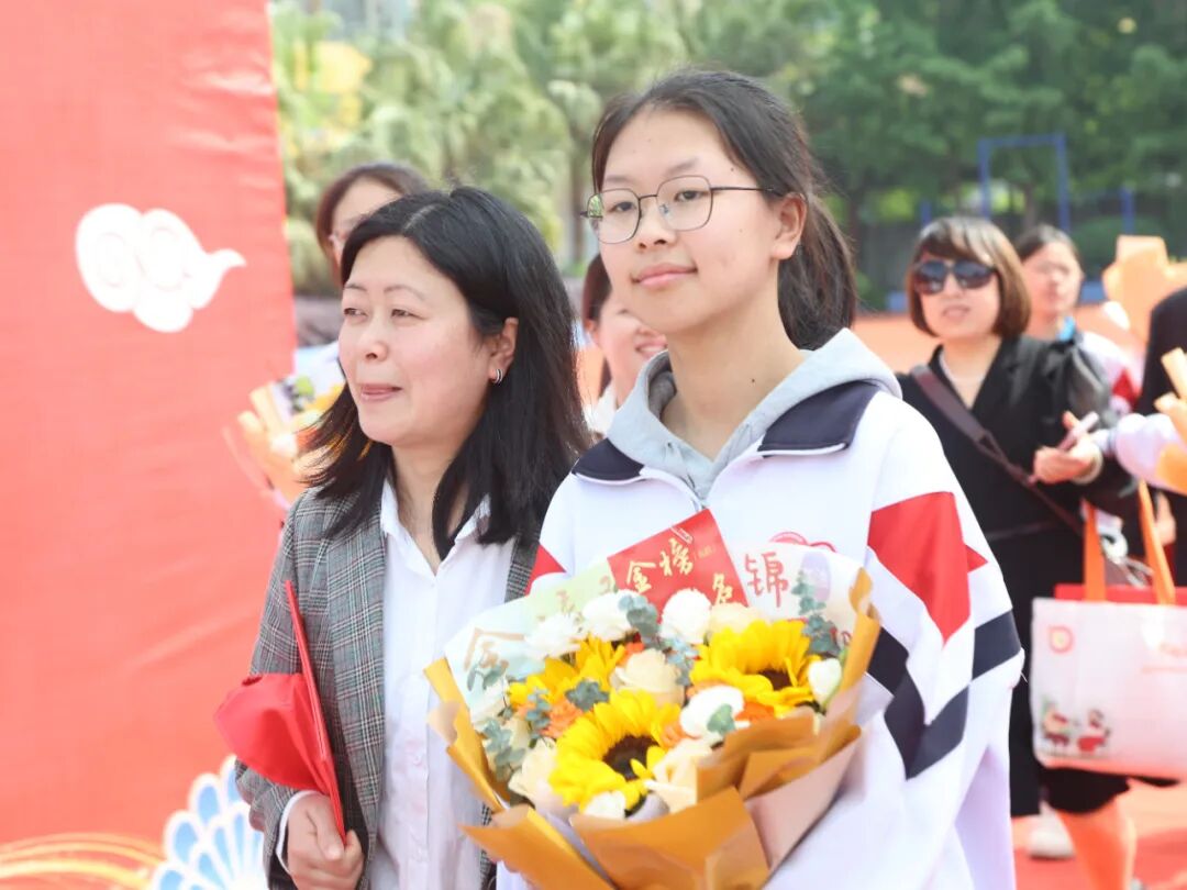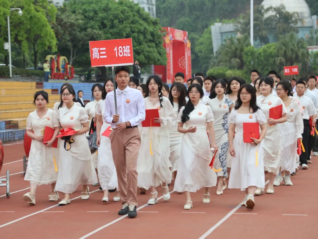 全体高三学子在校领导、教师及家长的陪同下,踏上红毯,依次穿过“成人门”“成才门”“状元门”,寓意告别青涩、肩负使命、奔赴未来。《千山万水》《明天会更好》的大合唱歌声与掌声交织为本次活动画上完美句号。