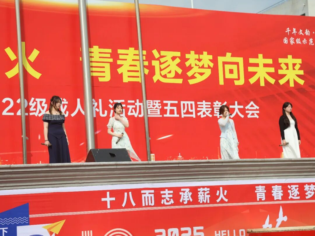 开场节目《鼓乐铿锵》以激昂的节奏点燃全场热情,激荡着学子们迈向成年的豪情。党委书记胥杰致辞,勉励学子以青春之我践行责任担当,传承五四精神。