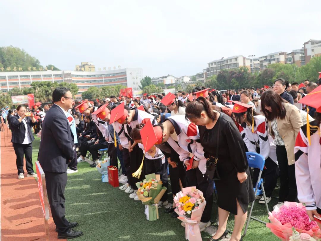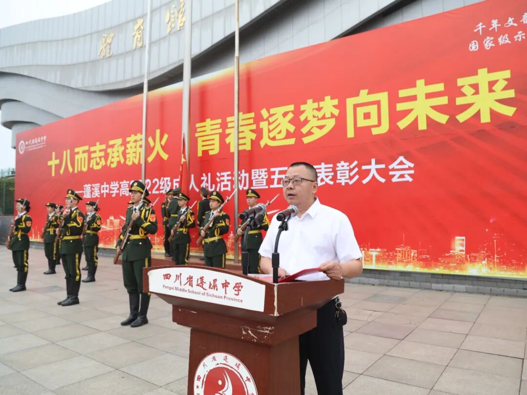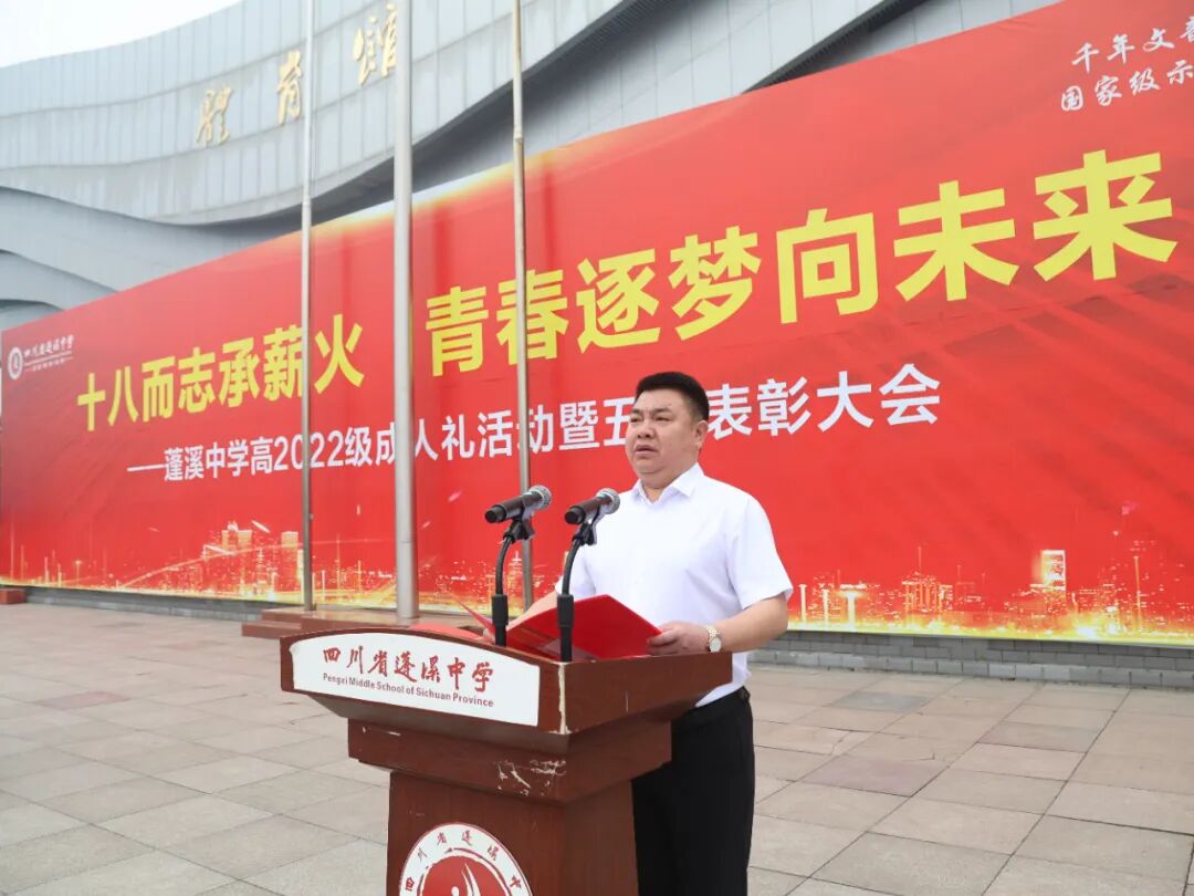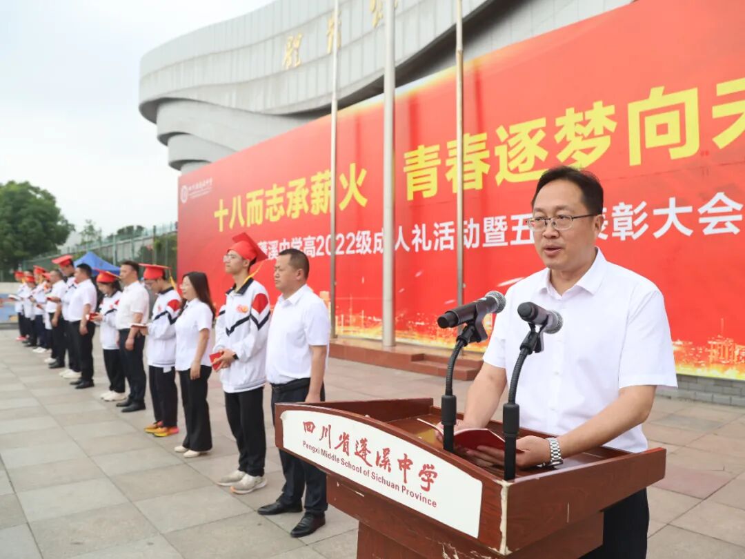 十八响鼓声如春雷激荡,十八载岁月似星河璀璨。4月30日上午,蓬溪中学在运动场隆重举行高2022级成人礼活动暨五四表扬大会。学校党委书记胥杰、校长杨加林等领导、高三学生家长与七千余名师生参加活动,共同见证这一庄严而充满温情的时刻。