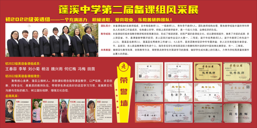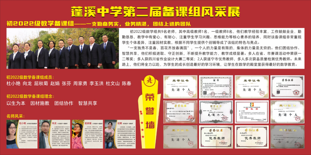 让我们一起走近这些优秀的团队,感受他们的育人智慧与策略,体会集体力量的磅礴与伟大。透过他们的努力与奉献,见证蓬中教师队伍的蓬勃生机和无限潜力,感受蓬中教育事业的光辉未来。