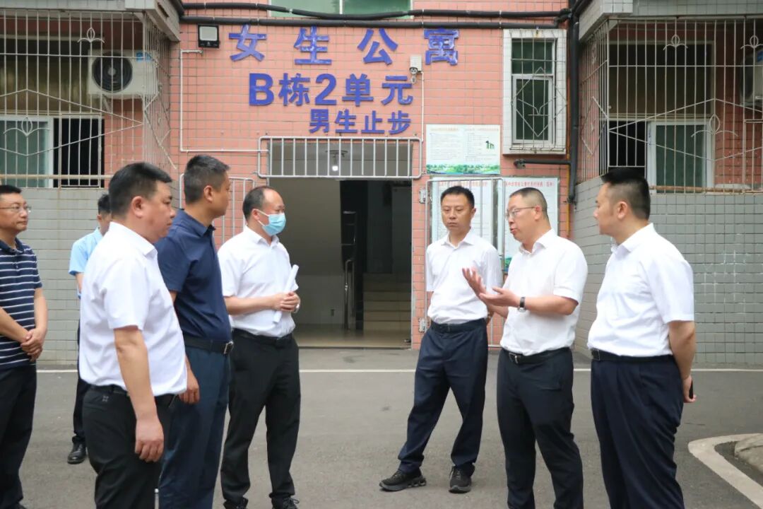 上午9时,黄亚军一行深入高考指挥中心、考务办、食堂、宿舍及综合楼等区域,详细了解考点设施设备运行、考务组织安排、后勤保障服务、应急处置方案等情况。黄亚军强调,要提高政治站位,以“时时放心不下”的责任感、“事事落实到位”的执行力,以“零差错”标准筑牢考试安全防线,统筹抓好高考备考工作。