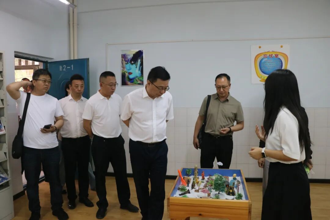调研组先后参观了学校心理健康辅导中心和禁毒教育基地。在心理健康辅导中心,调研组详细了解了心理咨询室、团体辅导室、放松训练室等功能区域的设置,查阅了学生心理档案和团体辅导活动记录,并与专职心理教师就青少年常见心理问题干预策略展开交流。学校负责人介绍,蓬溪中学通过“课程+活动+个案”三维模式,构建了覆盖全员的心理健康教育体系,有效提升了学生心理调适能力。