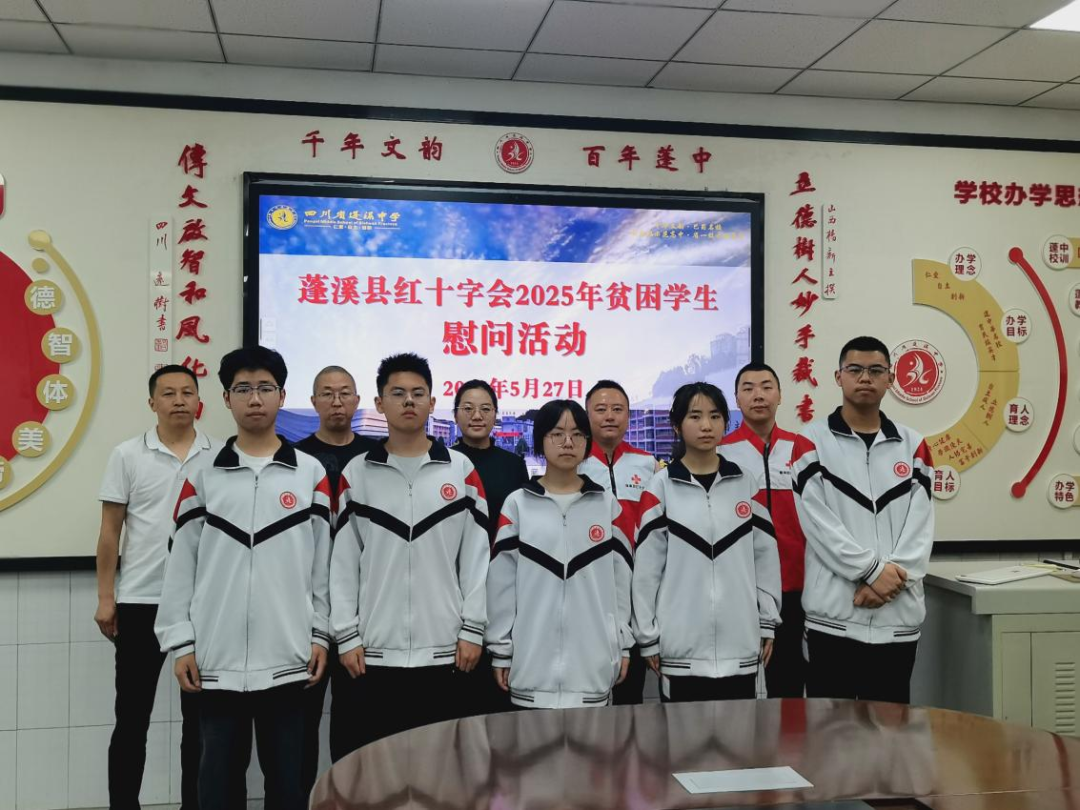 5月27日,秉持“人道、博爱、奉献”精神,县红十字会副会长王国成一行到蓬溪中学开展家庭经济困难学子慰问活动。县教育局学生资助管理中心主任何显勇、学校副校长曹敏等领导陪同慰问。