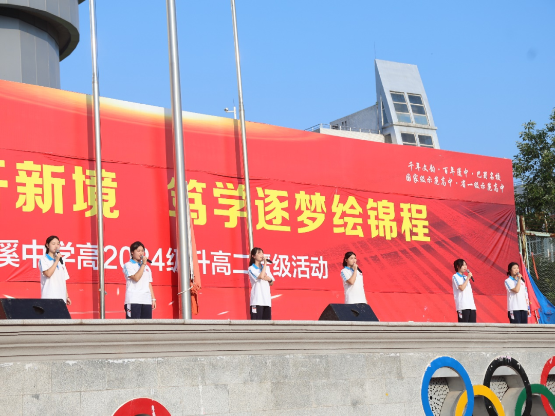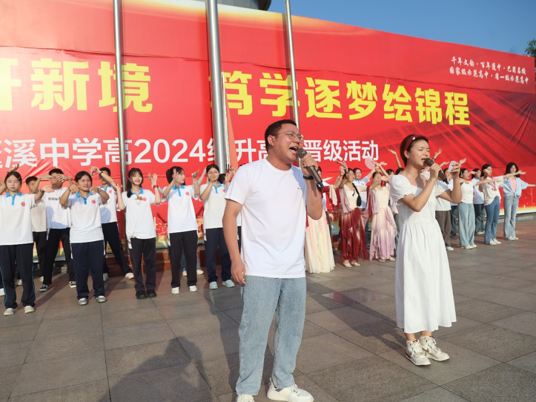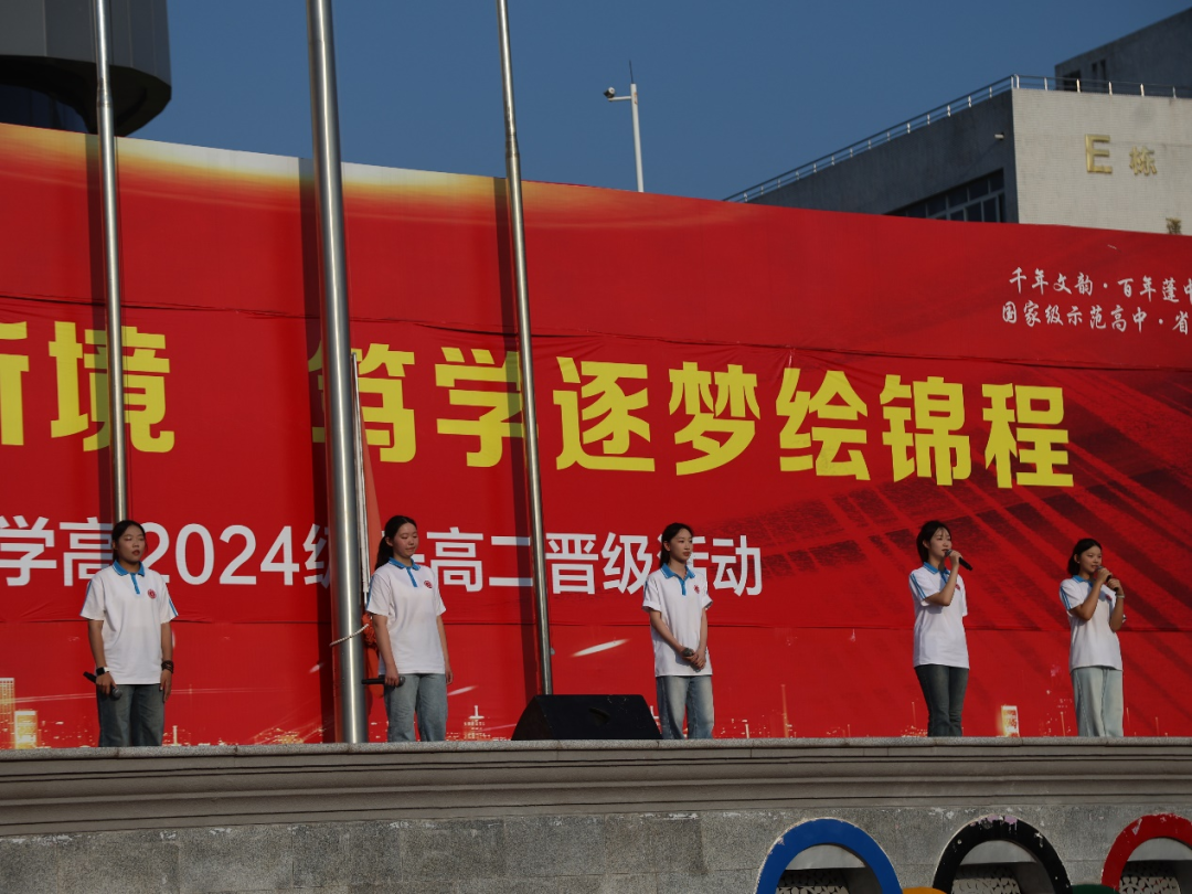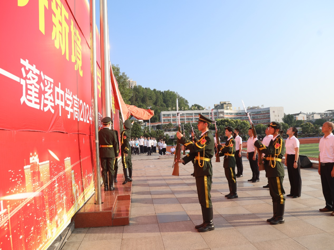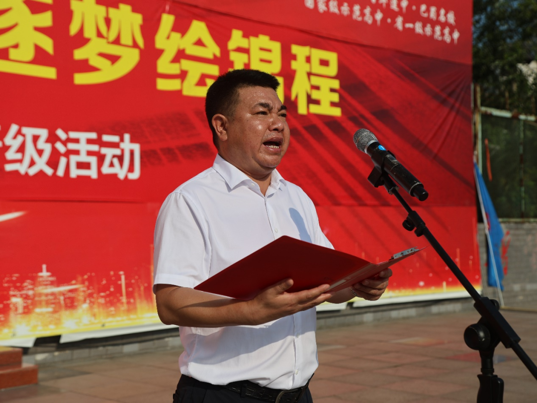7月15日清晨,蓬溪中学操场红旗猎猎。千余名师生迎着朝阳肃立,在《义勇军进行曲》中凝望五星红旗冉冉升起。一场以 “扬帆奋楫开新境,笃学逐梦绘锦程” 为主题的高一升高二晋级仪式,在校长杨加林的宣布中正式拉开战幕。