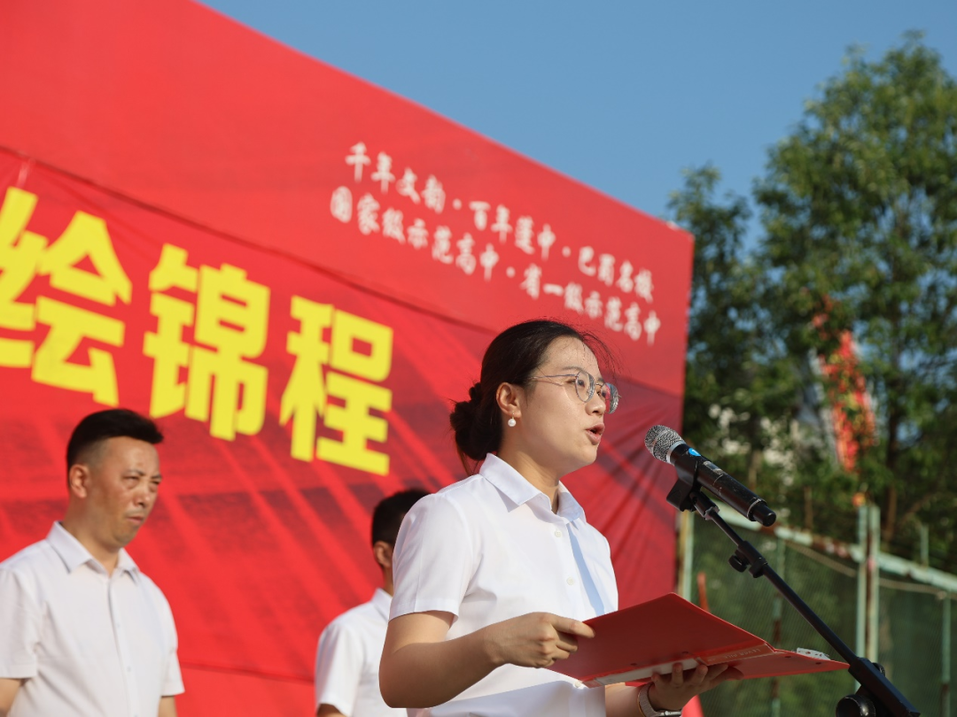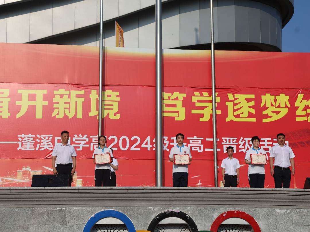 仪式特设颁奖环节。副校长曹敏宣读高一下期优秀学生表扬文件,三名特优生从胥杰书记手中接过证书,手中的证书与心中的梦想交相辉映。随后,二十余名进步学子分批登台领奖,这既是对他们过去一年的认可,更是对未来的激励!