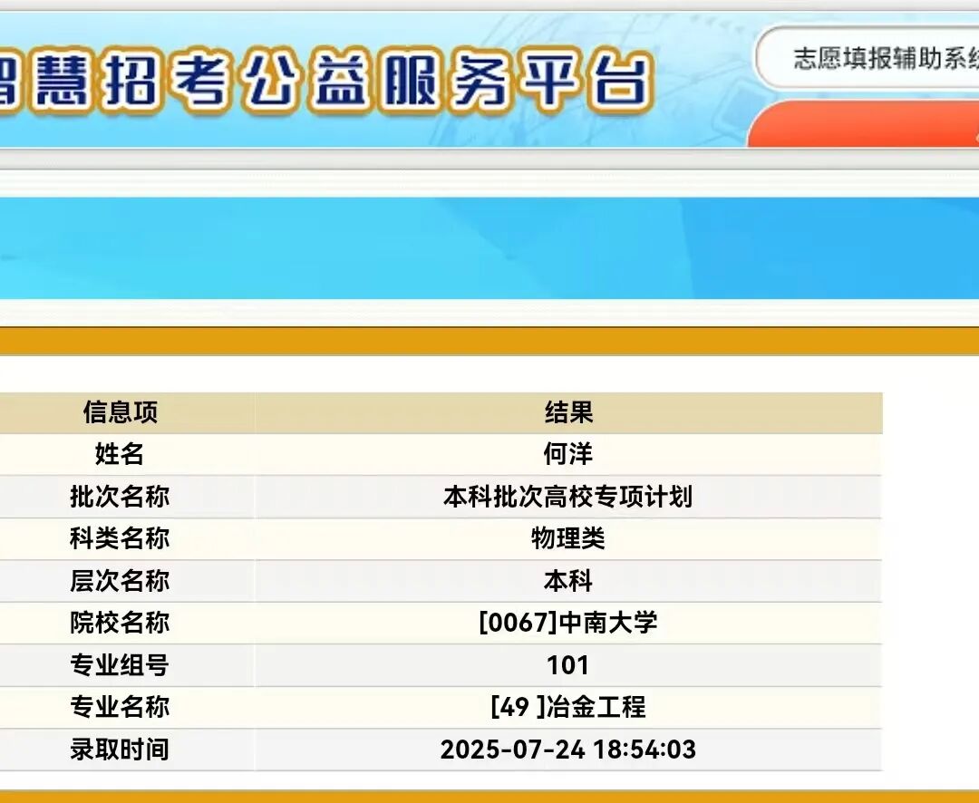何洋,中南大学(985、211、双一流)冶金工程专业