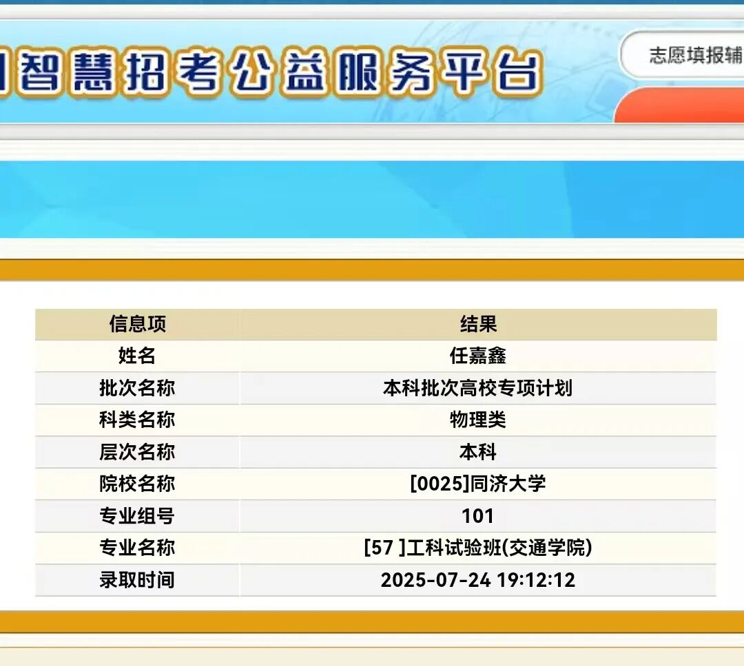 任嘉鑫,同济大学(985、211、双一流)工科实验班