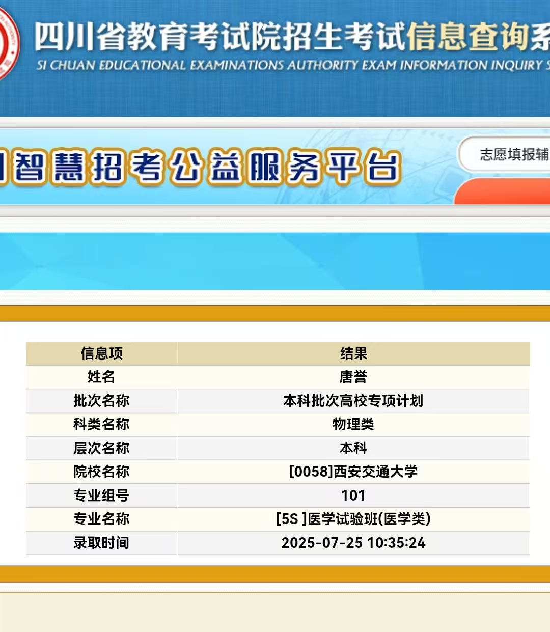 唐誉,西安交通大学(C9、985、211、双一流)医学实验班
