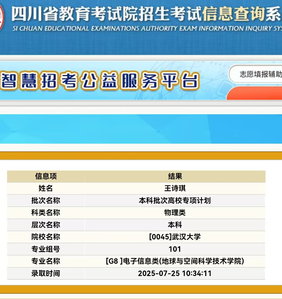 王诗琪,武汉大学(985、211、双一流)电子信息类专业