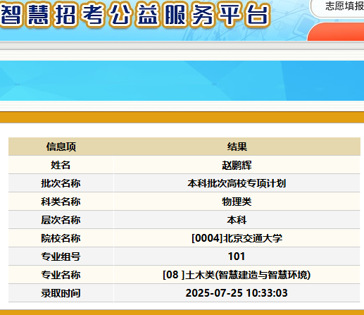赵鹏辉,北京交通大学(211、双一流)土木类专业
