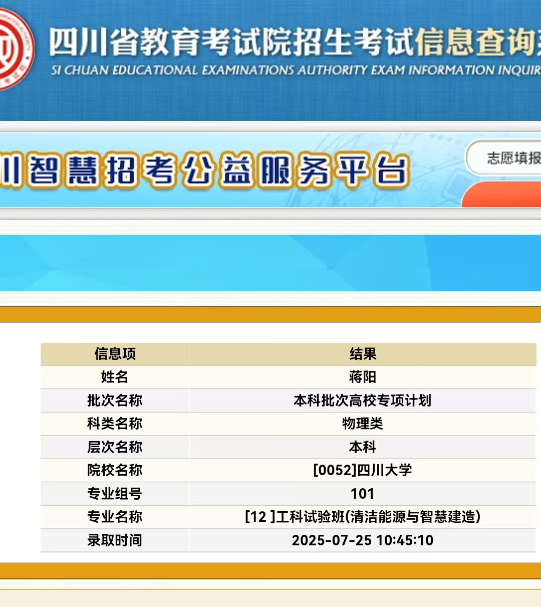 蒋阳,四川大学(985、211、双一流)工科试验班