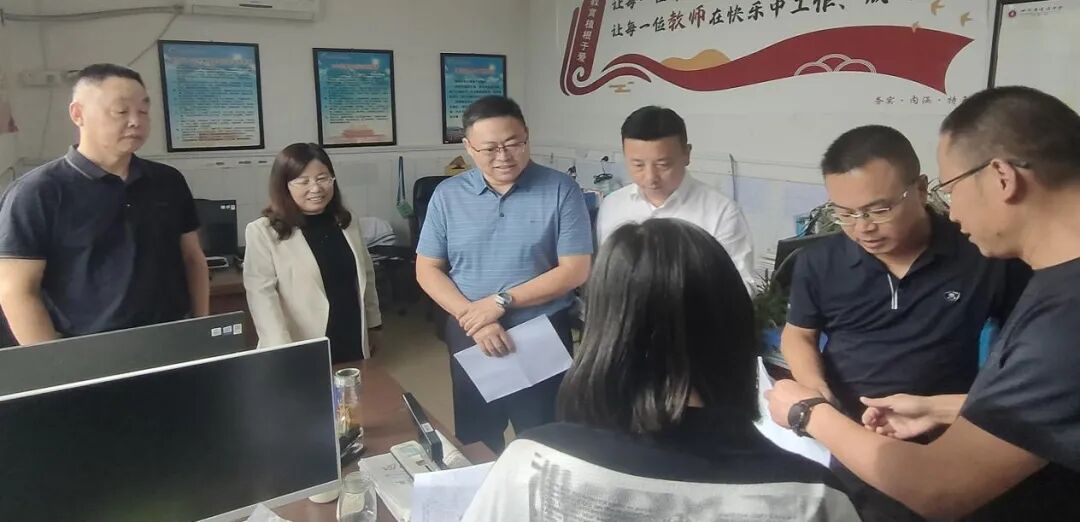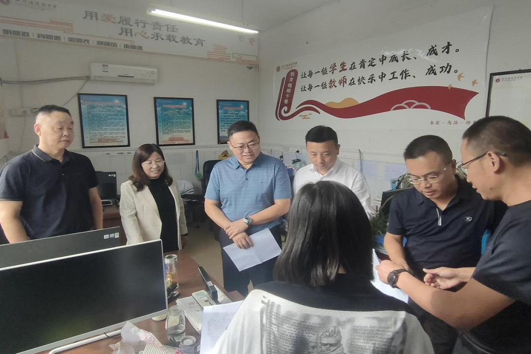 9月19日上午,蓬溪县赤城片区教育督导组组长柏利银率队一行四人莅临蓬溪中学,对学校控辍保学、未成年人保护、教辅资料征订及食堂食品安全四项重点工作进行专项督导。督导组采取资料查阅与现场走访相结合的方式,深入教室、食堂、功能室等场所,全面细致了解学校各项工作的开展情况。